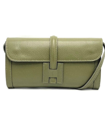 Bolso de mano en cuero color verde oliva Hellen