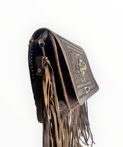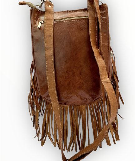 Bandolera marrón hecha de cuero de curtido tradicional Eliza