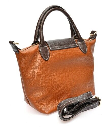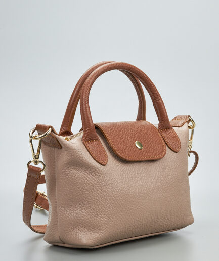 Bolso camel de piel genuina de diseño minimalista y elegante Paloma