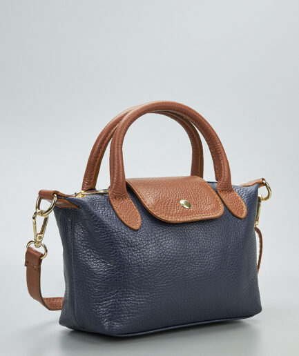 Bolso azul marino de piel genuina de diseño minimalista y elegante Paloma