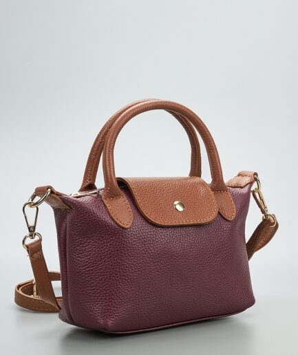 Bolso burdeos de piel genuina de diseño minimalista y elegante Paloma
