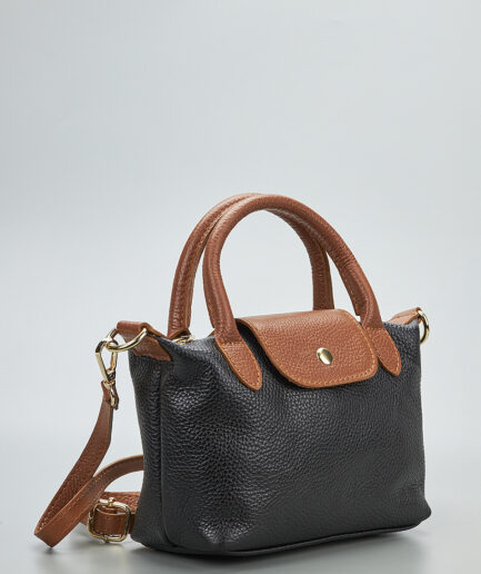 Bolso tote de piel grano natural en color Negro – Asa de mano y correa ajustable Antonia