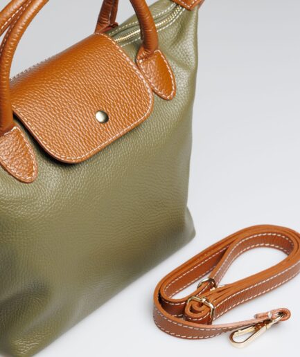 Bolso caqui de piel genuina de diseño minimalista y elegante Paloma