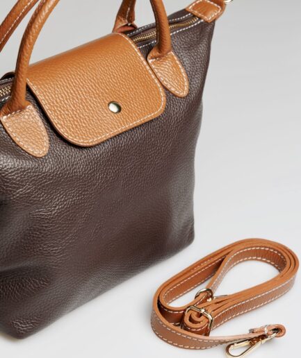 Bolso marrón de piel genuina de diseño minimalista y elegante Paloma