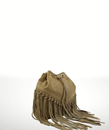 Bolso saco caqui con flecos boho soul