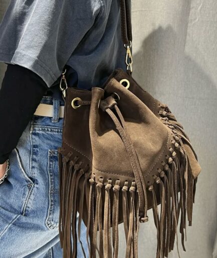 Bolso saco marrón con flecos boho soul