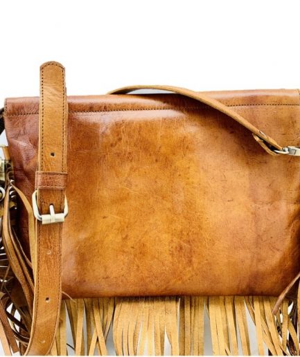 Bolso boho con flecos en piel artesanal