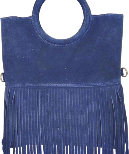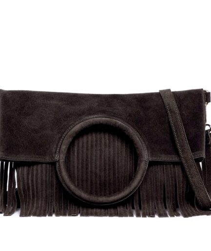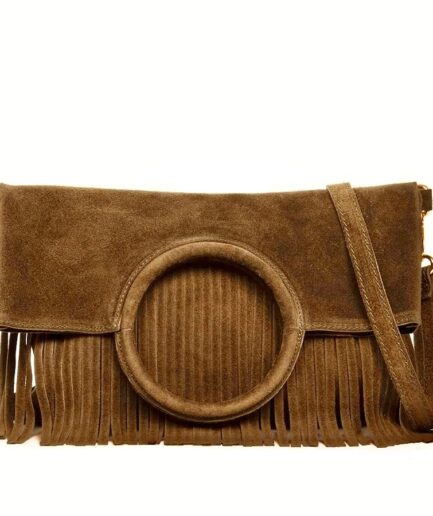 Bolso de ante con flecos marrón y asa de aro Tamara