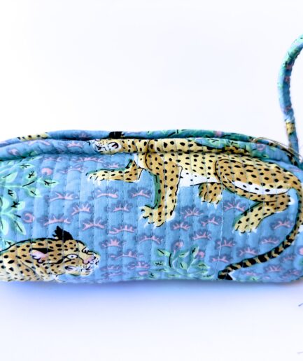 Set de neceseres celeste estampado Leopardo – Elegancia Salvaje