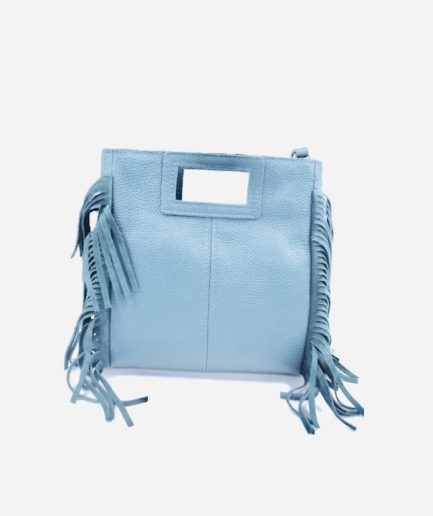 Bolso cuadrado de piel celeste flecos y asas integradas mini Telma