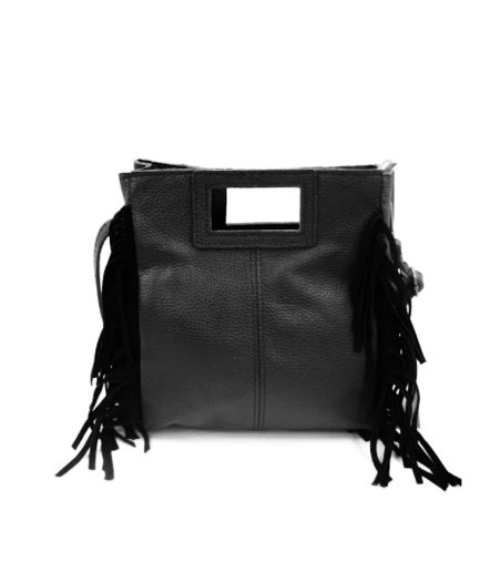 Bolso cuadrado de piel negro flecos y asas integradas mini Telma