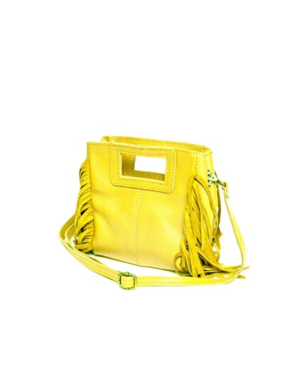 Bolso cuadrado de piel amarillo flecos y asas integradas mini Telma