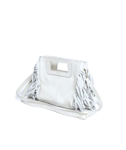 Bolso cuadrado de piel blanco flecos y asas integradas mini Telma