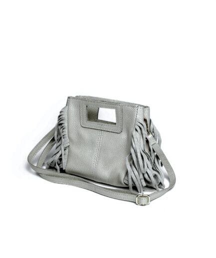 Bolso cuadrado de piel gris flecos y asas integradas mini Telma