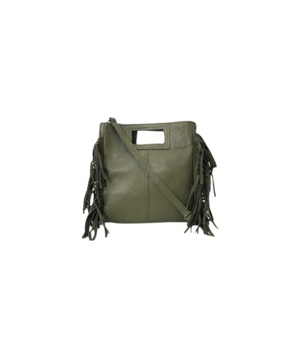 Bolso cuadrado de piel caqui flecos y asas integradas mini Telma