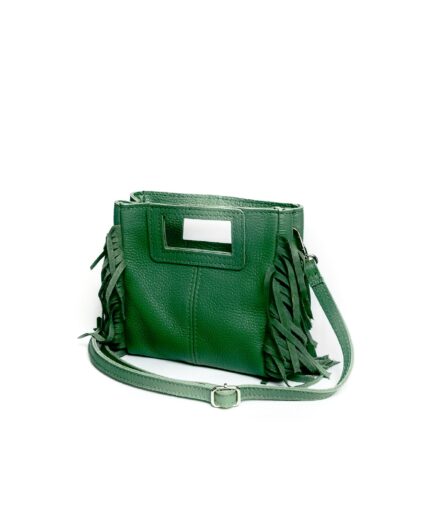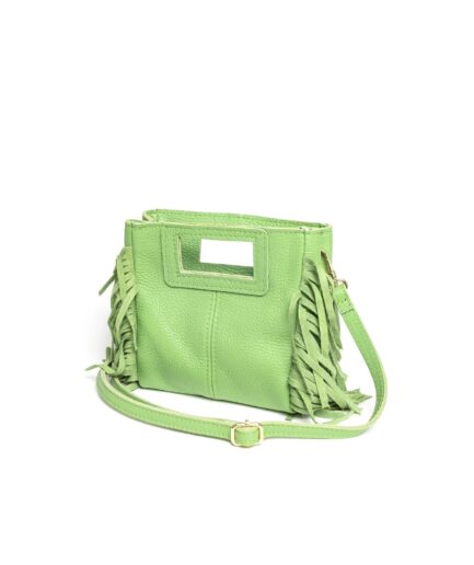 Bolso cuadrado de piel verde menta flecos y asas integradas mini Telma
