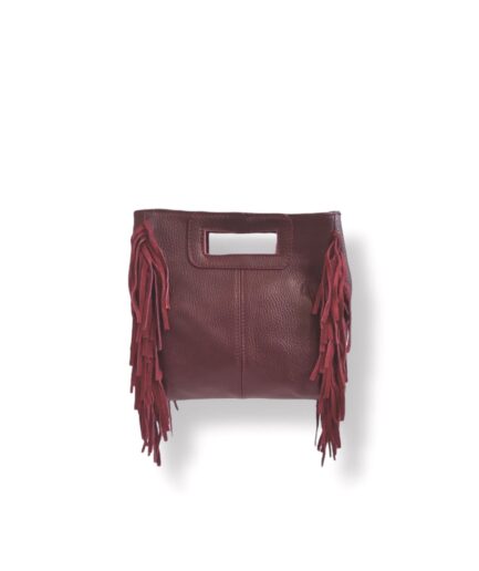 Bolso cuadrado de piel buganvilla flecos y asas integradas mini Telma