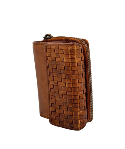 Cartera billetera mediana trenzada de piel lavada Axelle