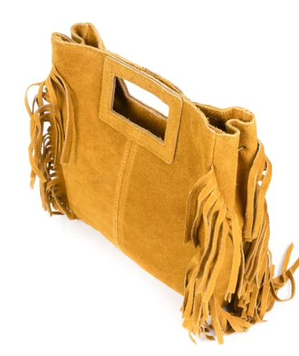 Bolso cuadrado mostaza flecos y asas integradas mini Erika