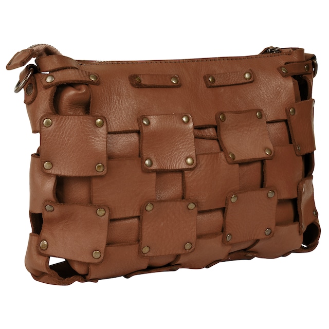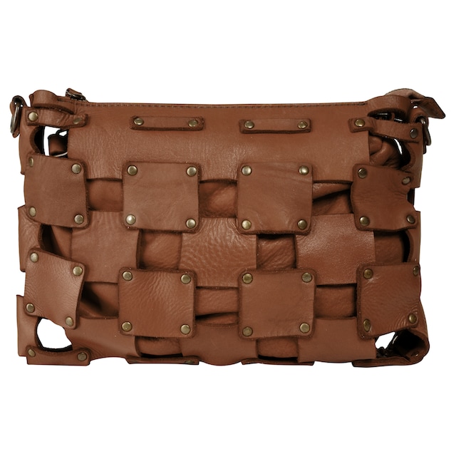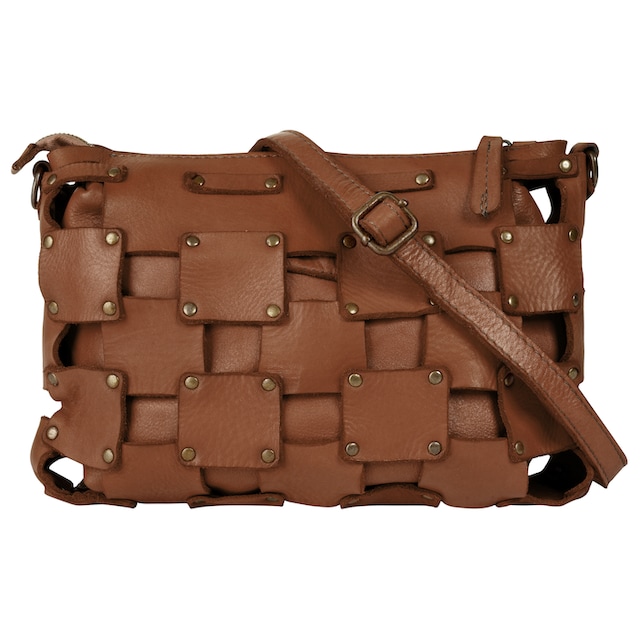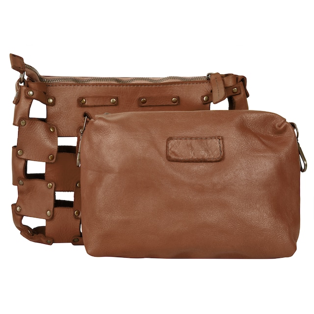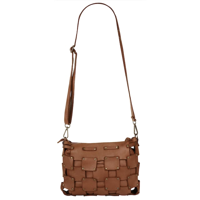 Bandolera pequeña de piel camel con tachuelas Jake