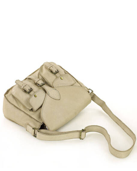 Correa de cuero suave ajustable larga 115 cm. Medidas: 34 cm x 10 cm x 27 cm.