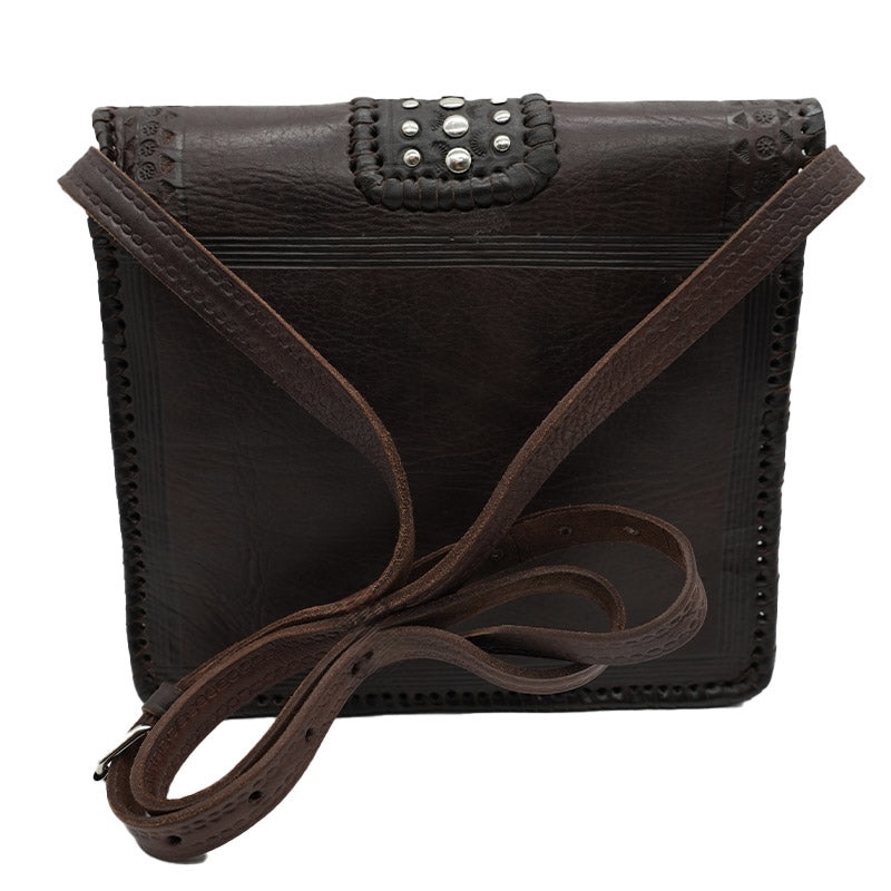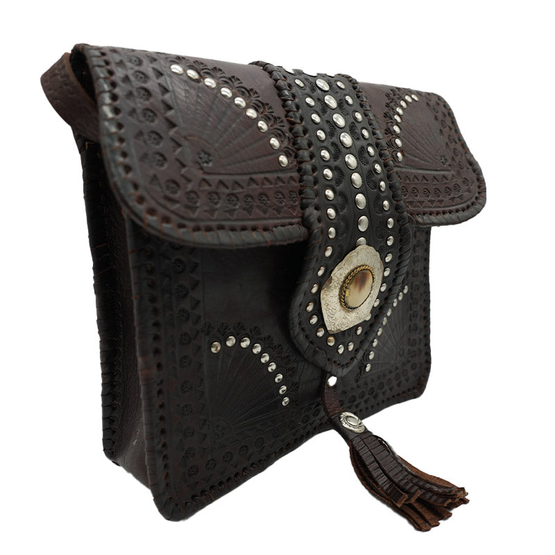 👜 Bolso bandolera de cuero artesanal Marrón con incrustaciones metálicas