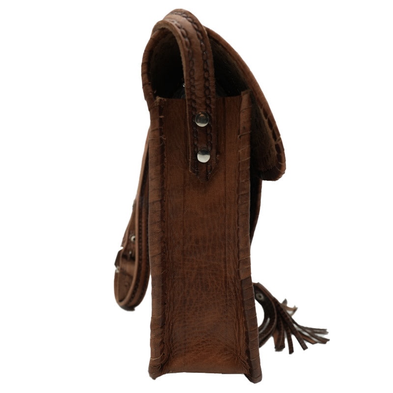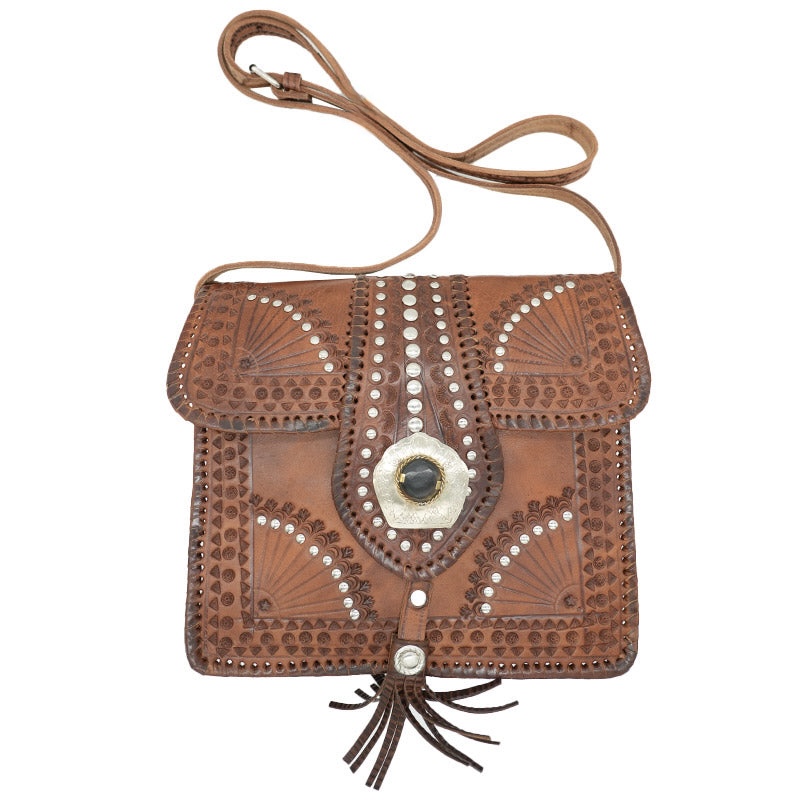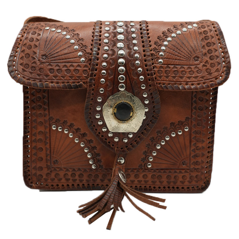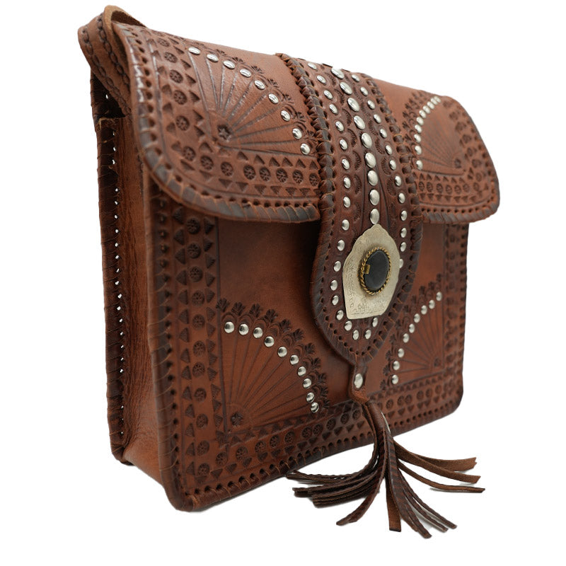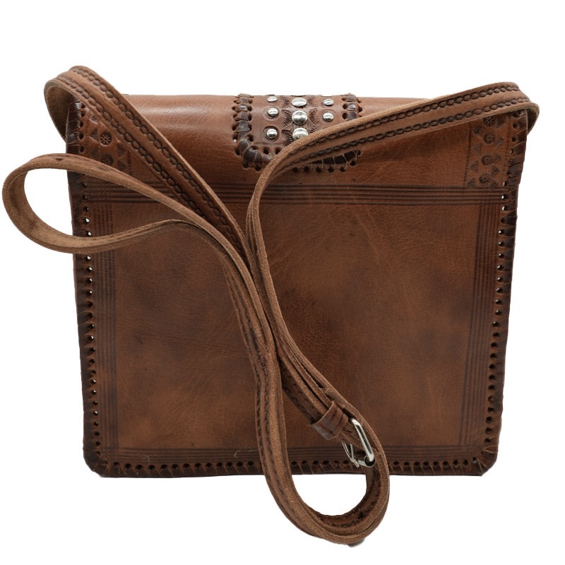 👜 Bolso bandolera de cuero artesanal Camel con incrustaciones metálicas