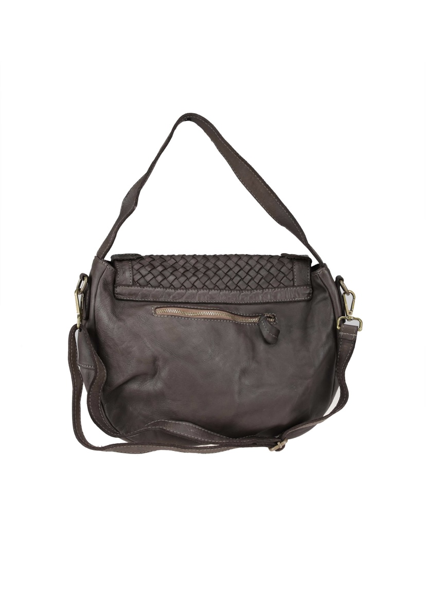¡Descubre la elegancia y la funcionalidad con nuestro bolso bandolera de tamaño mediano! Este bolso está confeccionado en piel auténtica, lo que le otorga durabilidad y un aspecto sofisticado. Destaca por su tejido estrecho en el panel frontal, que le añade un toque único y distintivo.