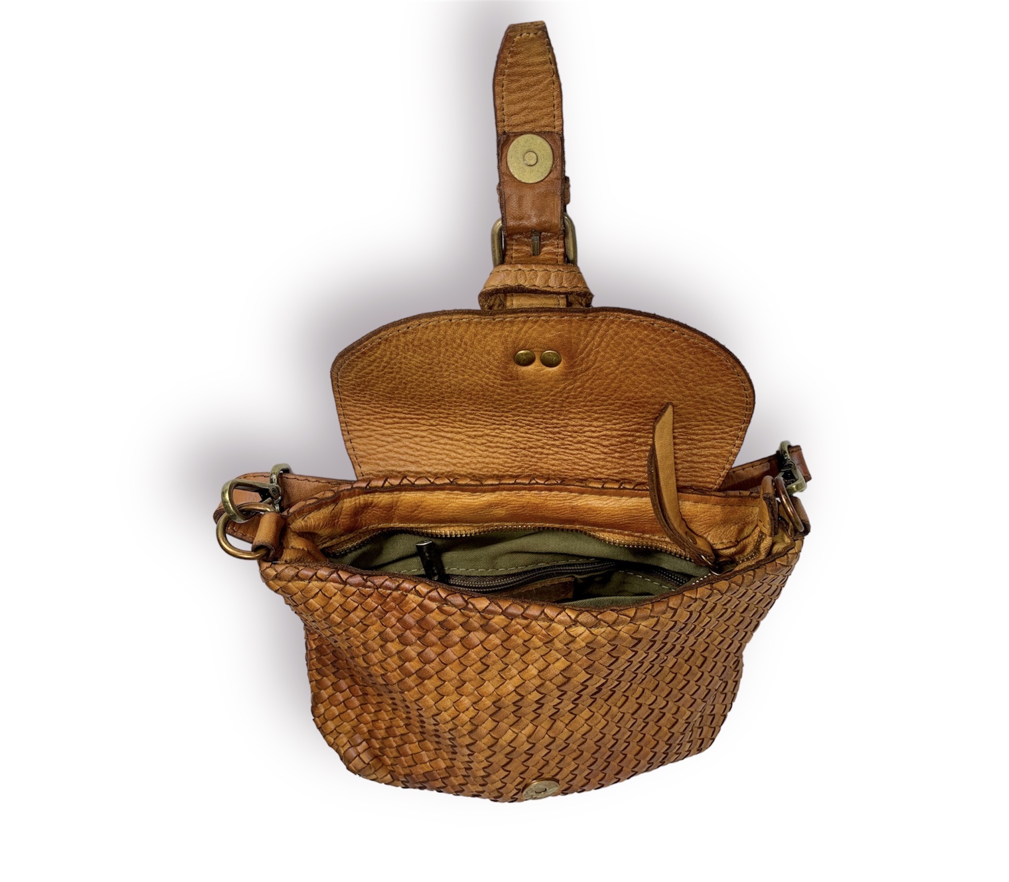 Descubre la elegancia y la funcionalidad de nuestra bandolera de piel italiana, perfecta para acompañarte durante el día y la noche con estilo. Este impresionante bolso está confeccionado con piel trenzada envejecida de la más alta calidad, que le confiere un aspecto único y sofisticado.