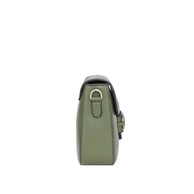 Detalles en oro antiguo y una correa de piel no ajustable aportan un toque clásico y refinado, mientras que su cierre de solapa entrelazada y cremallera garantizan seguridad y practicidad. El interior, forrado en tela, incluye un bolsillo con cremallera para organizar tus esenciales.