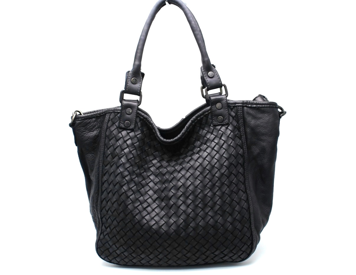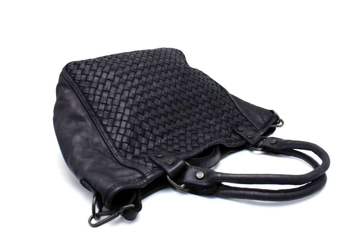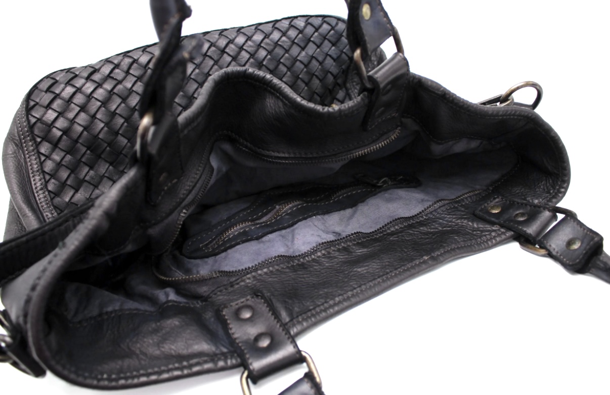 Bolso de cuero de fabricación italiana de la mejor calidad en la parte frontal finamente tejido. Piel suave con efecto sombreado y flor natural. Cierre con cremallera e interior de tela con bolsillo. Bandolera ajustable y extraíble.