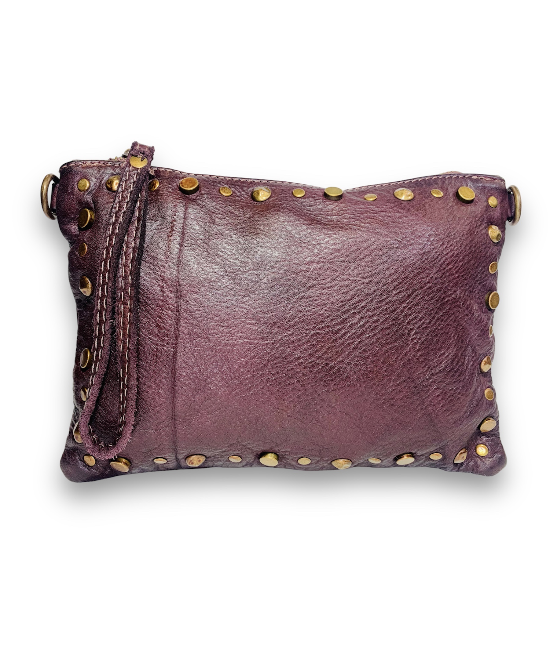 Bolso bandolera pequeña de piel burdeos italiana con tachas Sofia