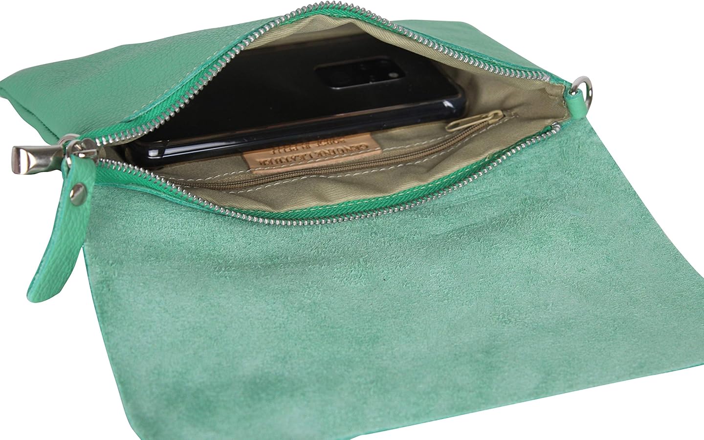 Este versátil bolso clutch y bandolera combina estilo y funcionalidad de manera excepcional. Su solapa, añade un toque de elegancia italiana que se integra perfectamente con tus looks diarios.