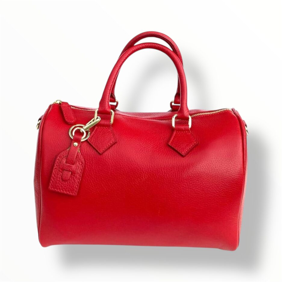 Sé el primero en valorar “Bolso baúl pequeño para mujer en piel rojo Sonia”