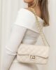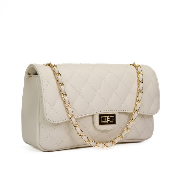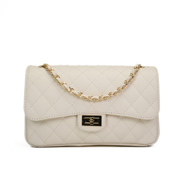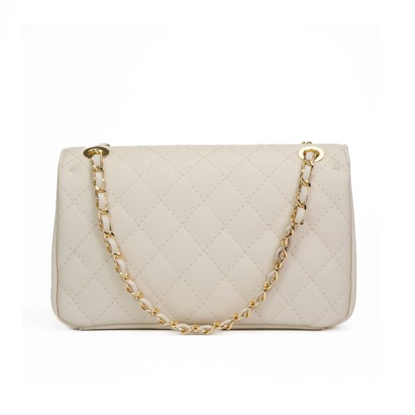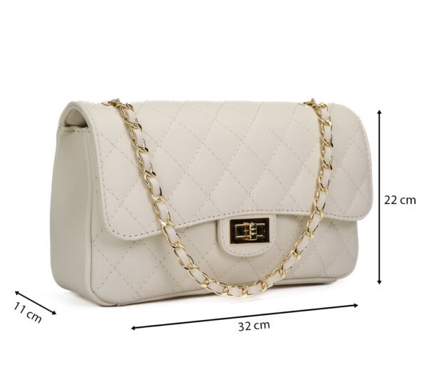 Tiene un bolsillo con cremallera y un bolsillo de diseño acolchado. Asa larga ajustable (cadena entrelazada con cuero natural).