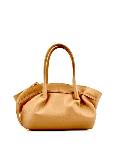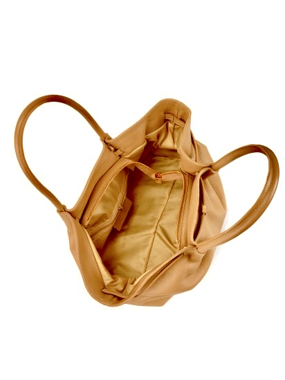 Bolso camel de cuero con herrajes dorados Alisson