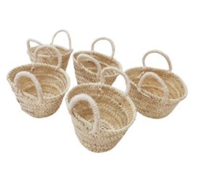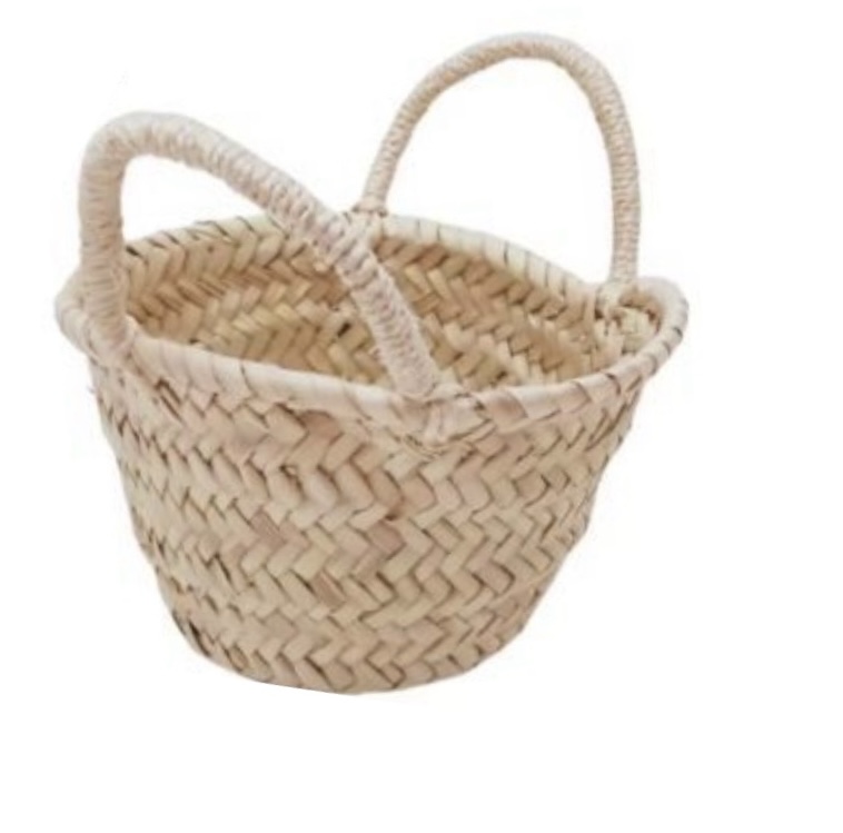 La cesta tipo rústica tejida con rafia. Es un capazo mini para decoración.