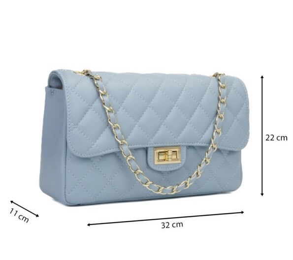 Tiene un bolsillo con cremallera y un bolsillo de diseño acolchado. Asa larga ajustable (cadena entrelazada con cuero natural).