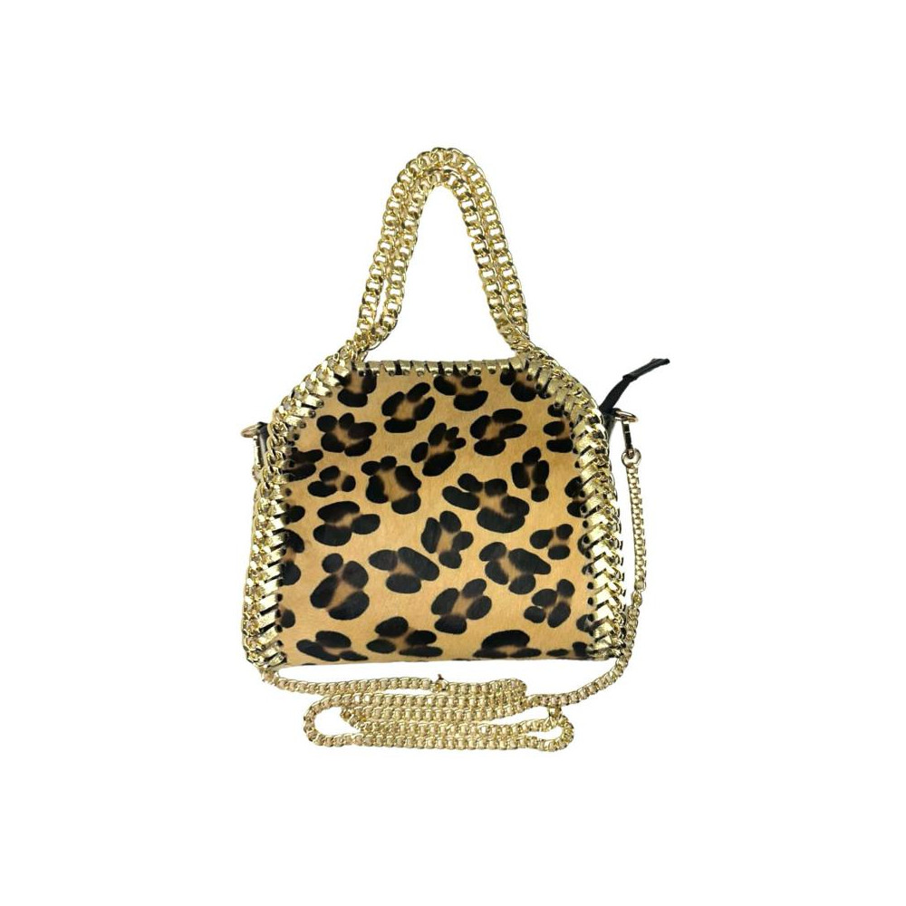Bolso Italiano de Piel con Diseño Animal Print y Cadena Dorada para Mujer.
