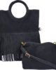 Sé el primero en valorar “Bolso de ante con flecos negro y asa de aro Tamara”