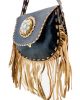 Bolso bandolera de cuero de vaca, bolso de cuerpo cruzado con flecos para mujer.
