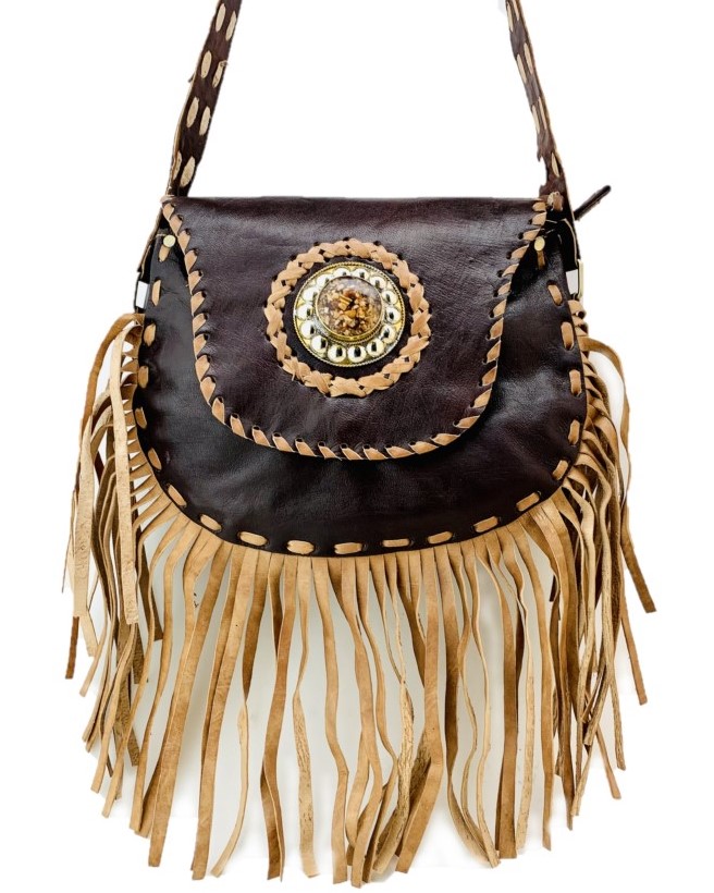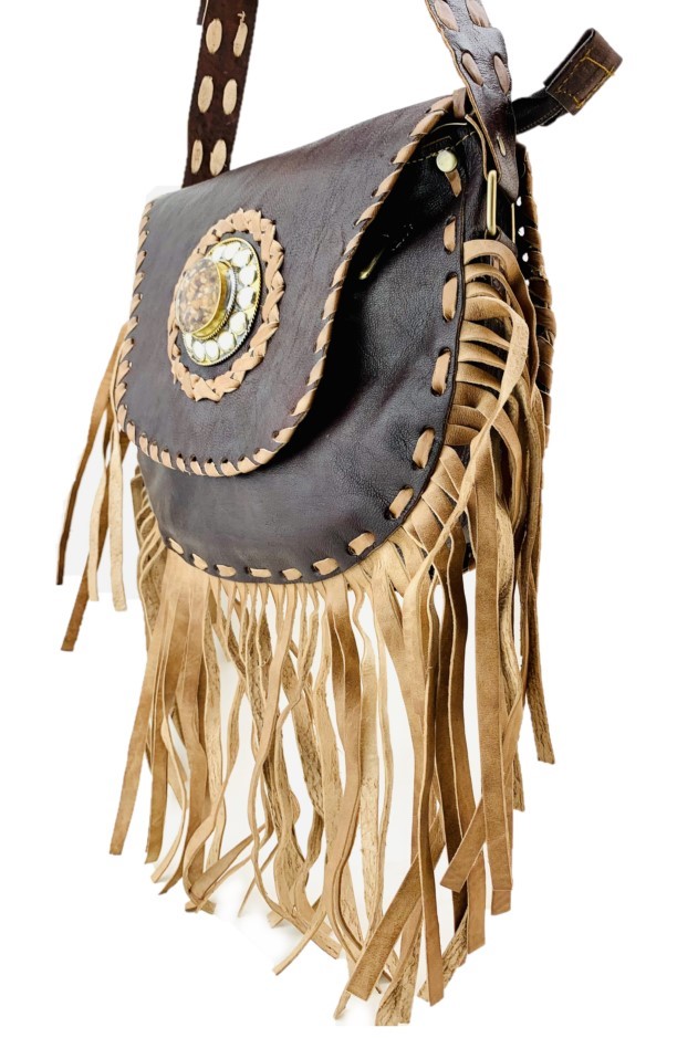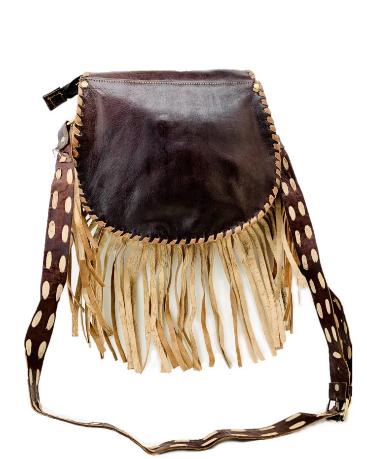 Bolso bandolera de cuero de vaca, bolso de cuerpo cruzado con flecos para mujer.