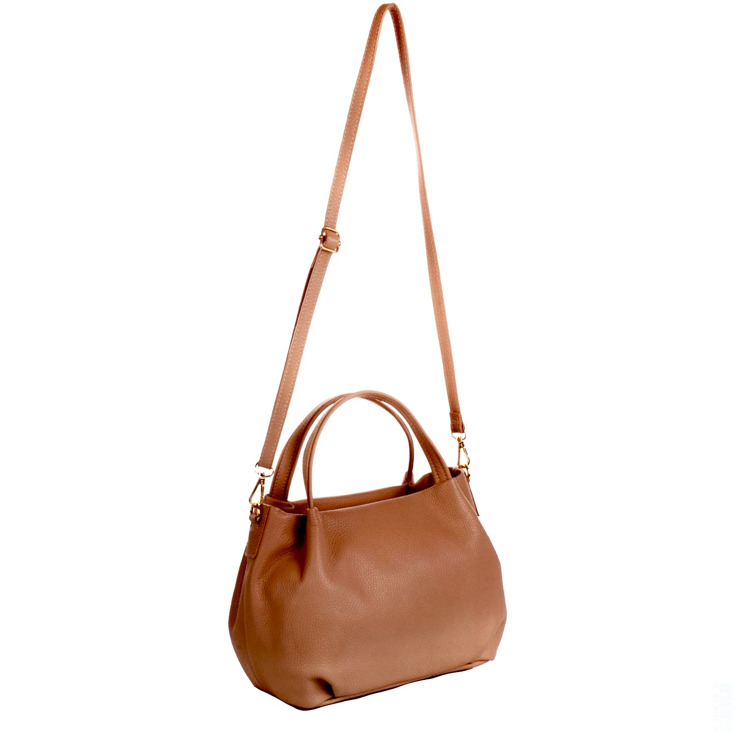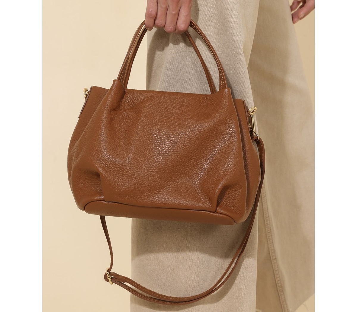 Este bolso de cuero mediano es el aliado perfecto para el día a día. Confeccionado en cuero camel de alta calidad, destaca por su diseño elegante y atemporal, fácil de combinar tanto con looks en negro como en blanco.