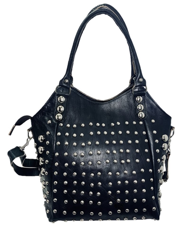 ¡Prepárate para destacar en cualquier concierto de heavy metal o rock con nuestro increíble bolso adornado con tachas! Este bolso es el complemento perfecto para tu estilo rebelde y audaz, y hará juego a la perfección con tu chupa de cuero.