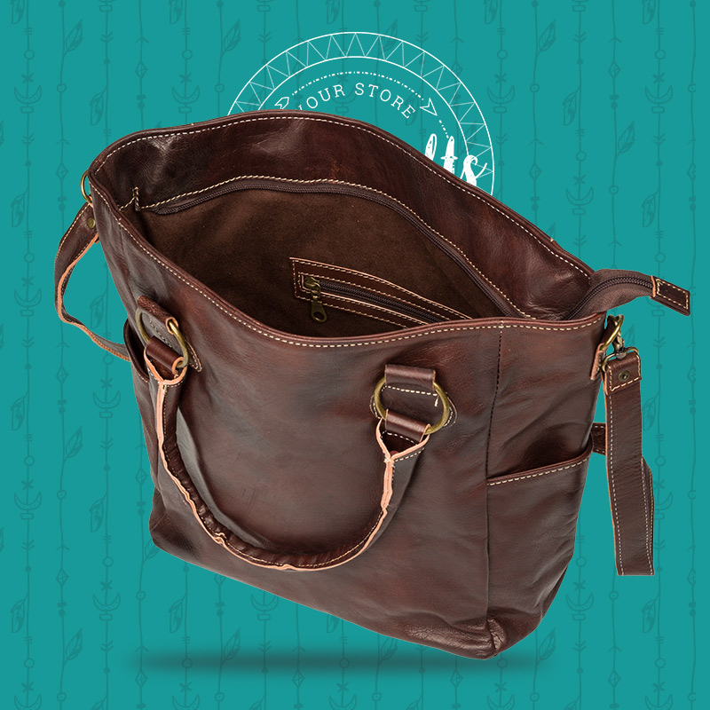 Todos nuestros productos de cuero están hechos a mano y su nueva bolsa de cuero puede estar sujeta a una variación natural en tamaño y color.