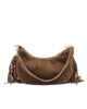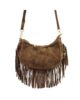 Bolso de hombro de ante con flecos, estilo boho chic perfecto para cualquier ocasión.