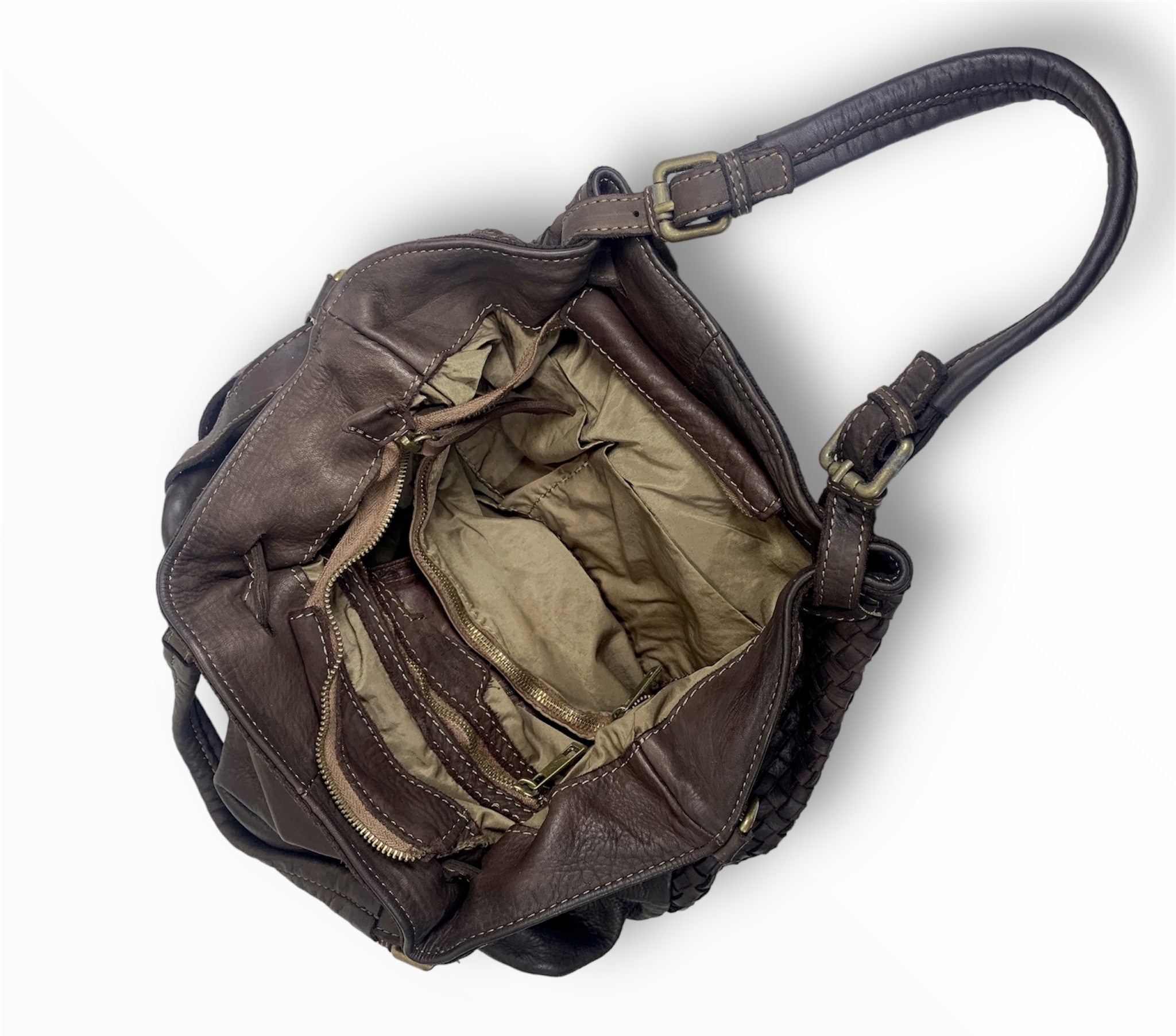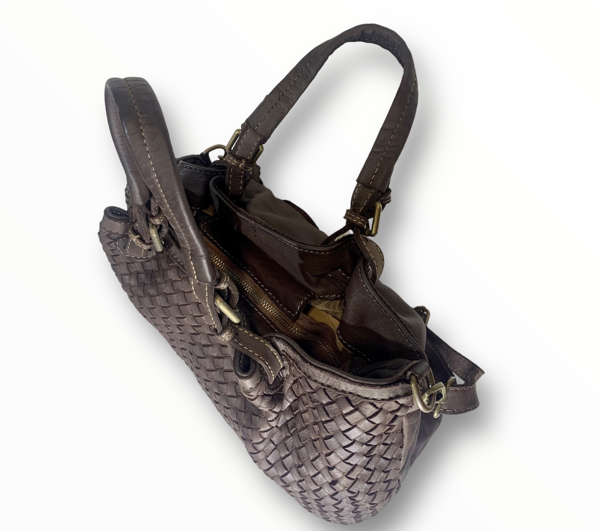 Sé el primero en valorar “Bolso de hombro de piel trenzado italiano marrón Greta”