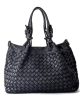Bolso de hombro de piel trenzado italiano negro Greta