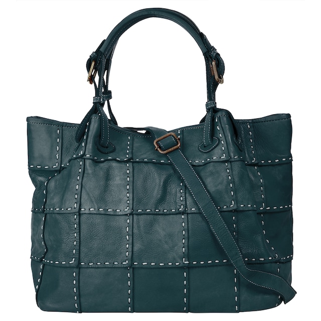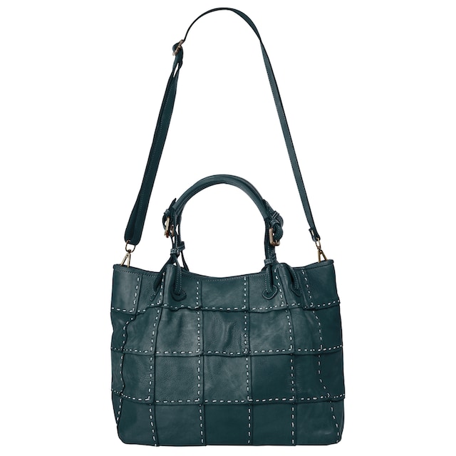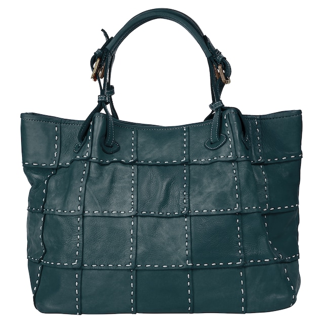 Bolso de hombro en piel petróleo cosido a mano en relieve Matilda