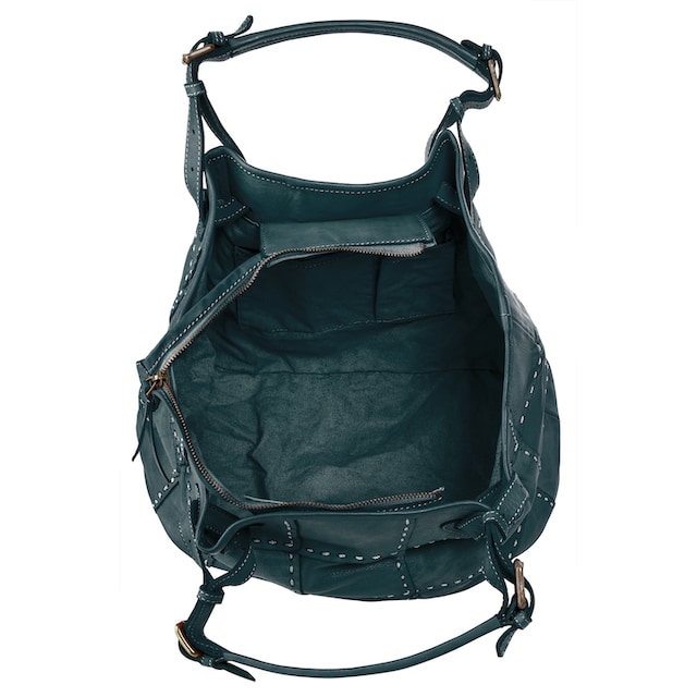 El bolso está elaborado con piel verdadera lavada y cosida a mano en relieve, lo que resalta su acabado precioso y su estructura mórbida. Viene equipado con una correa de cuero suave ajustable que permite llevarlo tanto en bandolera como al hombro, gracias a las correas de hebilla ajustables.